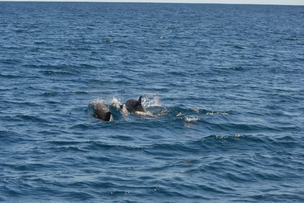 Onderweg naar onze eerste locatie komt een groepje speelse dolfijnen ons een fijne dag wensen.